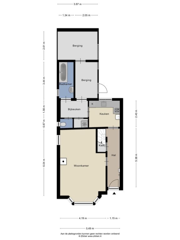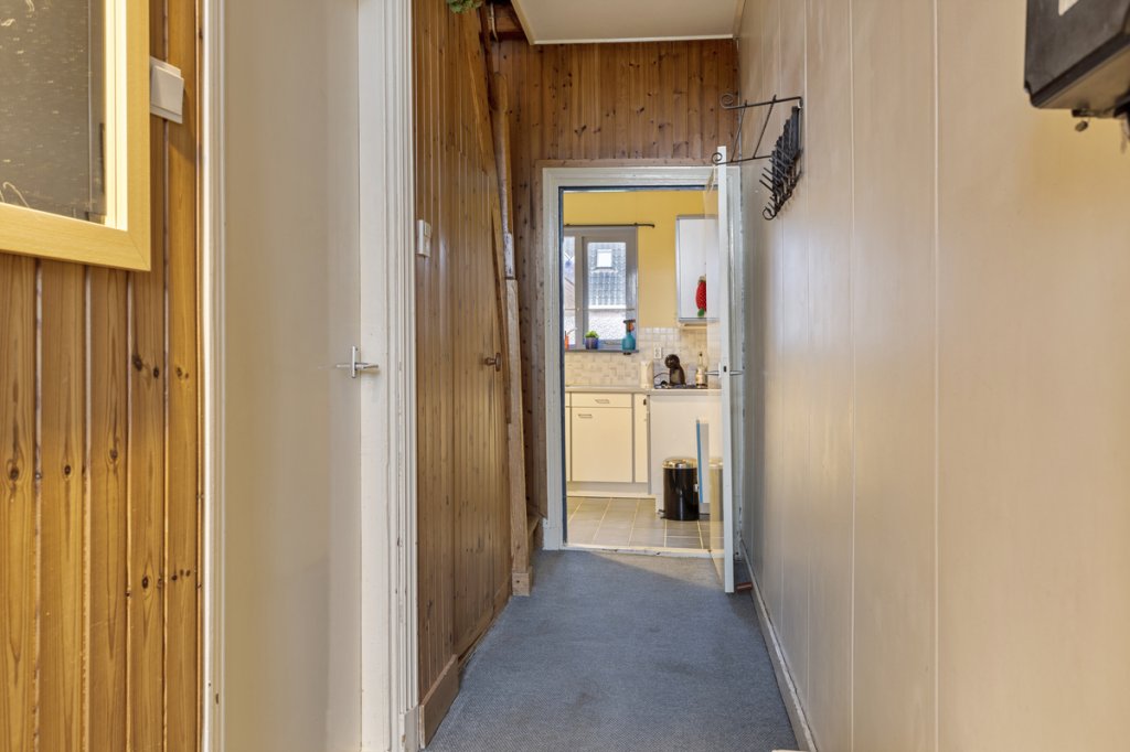 Begane grond: Hal/entree met meterkast, woonkamer met erker en schouw voorzien van gashaard. Dichte keuken met aangrenzend een bijkeuken voorzien van wasmachine aansluiting en toilet. Doorgang naar badkamer welke voorzien is van een ligbad met douche en wastafel. Aan de achterzijde van de woning zijn 2 inpandige bergingen aanwezig.