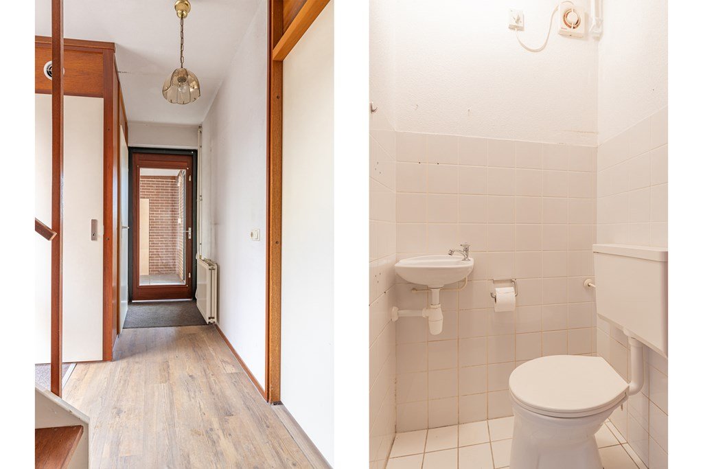 Via de hal met toilet en meterkast kom je in de lichte woonkamer. De grote raampartijen zorgen voor een fijne lichtinval en een open en vriendelijke sfeer. Er is hier voldoende plek voor een ruime zithoek en een aparte eethoek.