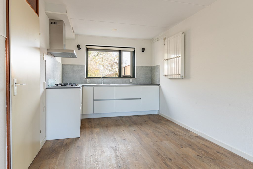 De halfopen moderne keuken sluit hier mooi op aan en is voorzien van diverse inbouwapparatuur, zoals inductiekookplaat, vaatwasser, koelkast en vriezer. Een praktische en overzichtelijke plek, voor wie kookt en gezellig samenzijn waardeert.