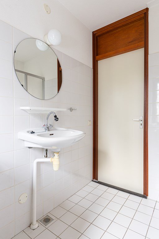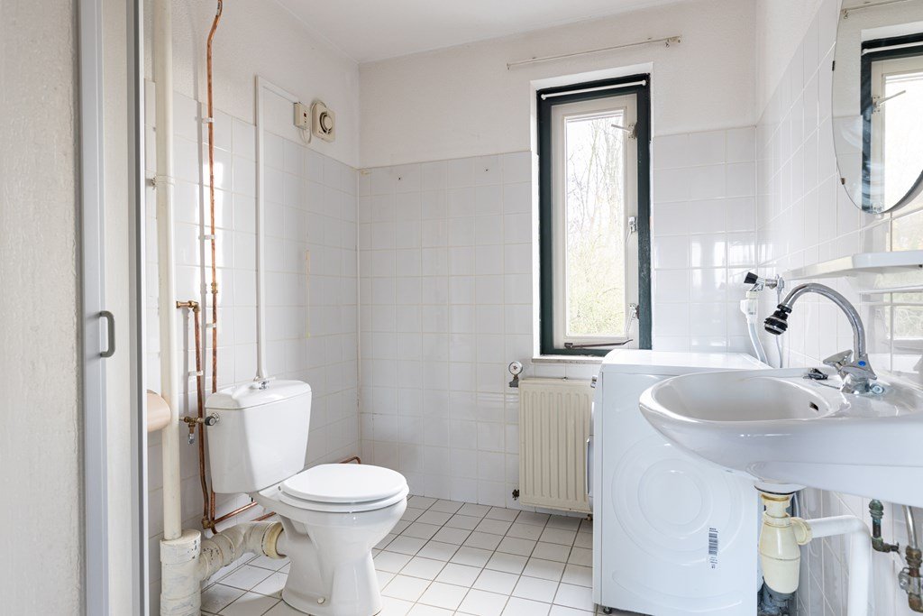 Aangrenzend is hier de bijkeuken, waar je de aansluiting voor de wasmachine vindt en extra ruimte hebt om spullen op te bergen. Vanuit de bijkeuken loop je zo buiten of naar de garage.