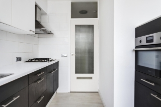 Via het gezamenlijke trappenhuis bereik je de vierde verdieping. Je komt binnen in een ruime hal met toilet. De woonkamer is licht en royaal, met voldoende plek voor een gezellige zithoek én eettafel. De keuken is modern en voorzien van gaskookplaat, afzuigkap, koelkast, combi-oven en toegang tot het eerste balkon. Er zijn twee slaapkamers, waarvan één ook toegang heeft tot het tweede balkon. De badkamer is keurig afgewerkt met douche, wastafelmeubel en aansluiting voor de wasmachine.