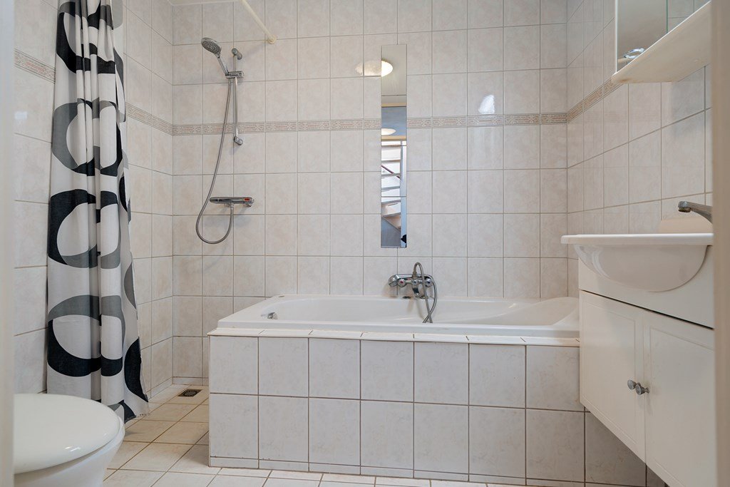 ligbad, wastafelmeubel en een tweede toilet. In een afgesloten kastruimte is er een