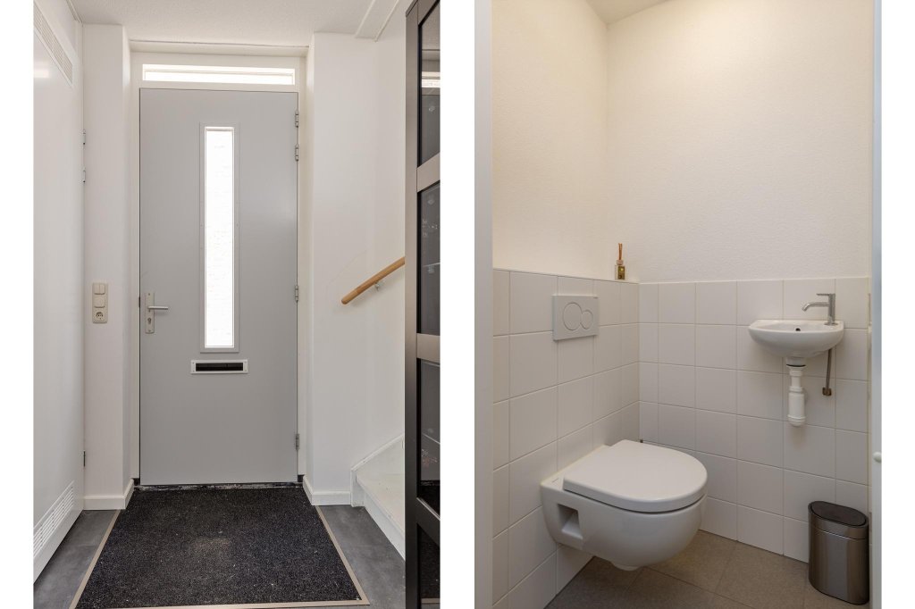 In de hal bevindt zich het toilet en een trapkast en trap naar boven.