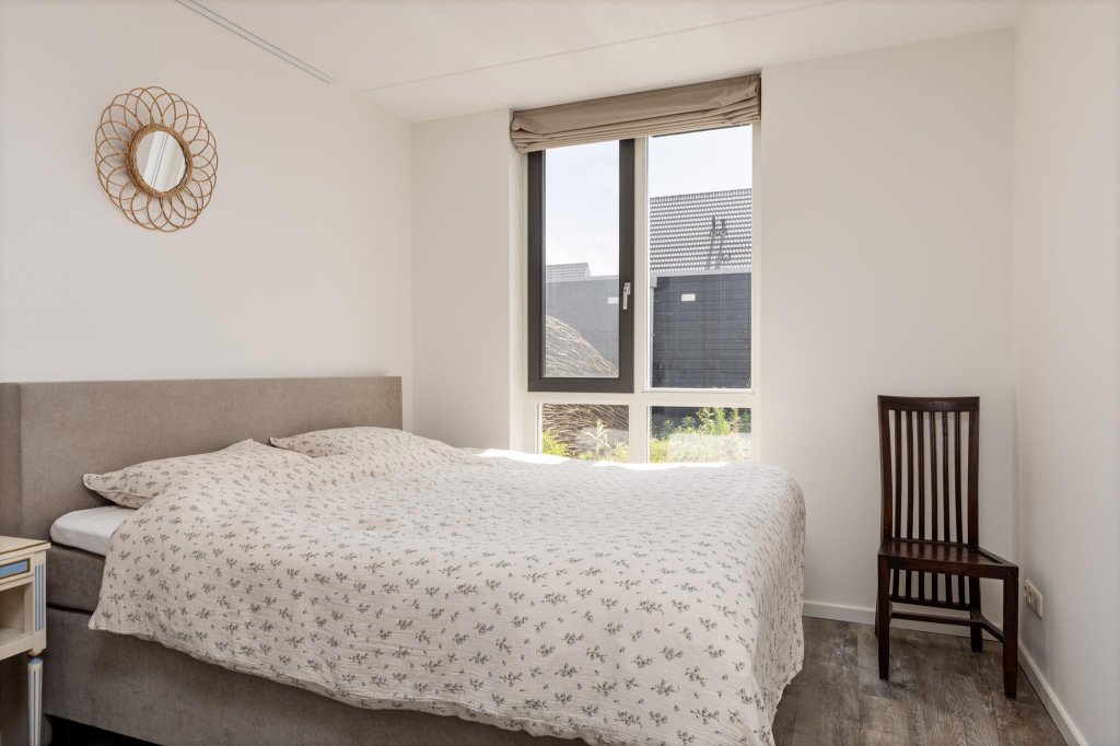 Door naar de ruime slaapkamer, met grote kast en ruimte rondom om het bed.