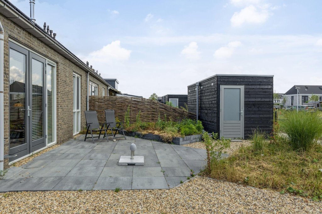 De tuin is zeer ruim, en de meeste grond zit aan de zijkant, hierdoor heeft u op vele plekken de gelegenheid om te zitten. De tuin is degelijk aangelegd, maar biedt nog mogelijkheid voor uitbreiding. Achter in in de tuin is een mooie ruime zit gecreëerd met een mooie pergola.