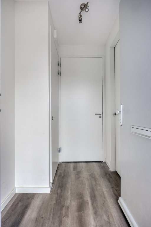 Entree met hal en toilet. Aan de voorzijde bevindt zich de moderne keuken, compleet met