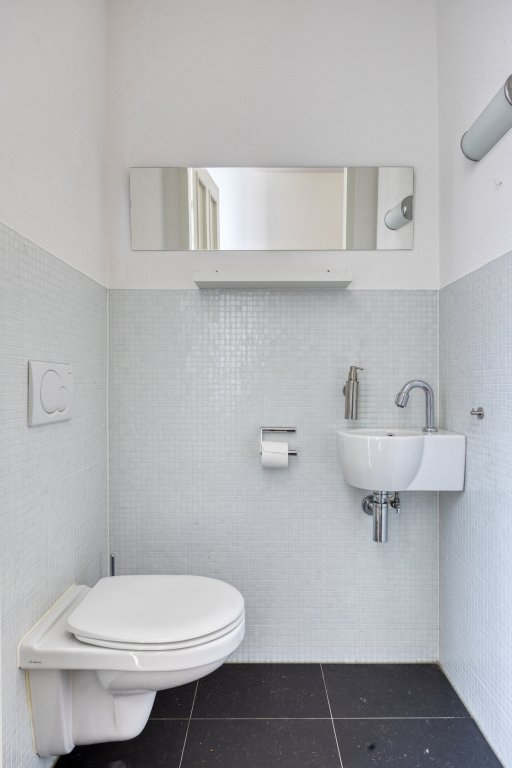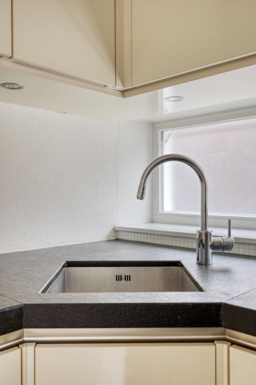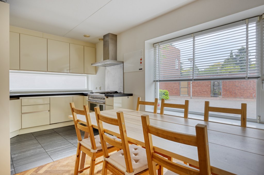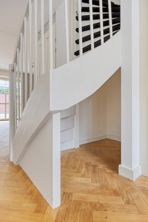 Bij binnenkomst in de hal valt direct de luxe afwerking op, met een prachtige visgraat parketvloer. De betegelde toiletruimte is voorzien van mozaïek op de wanden, wat zorgt voor een stijlvolle uitstraling.De L-vormige woonkamer is licht en ruim en heeft openslaande deuren naar de tuin. De open keuken aan de voorzijde is voorzien van topapparatuur, zoals een Miele koel- en vrieskast, Bosch vaatwasser en een losstaande magnetron. Tot slot biedt het super-de-luxe Boretti VFP94IX gasfornuis alle mogelijkheden voor de chef van het huis! Het werkblad biedt een royaal werkoppervlak en veel opbergruimte, ideaal voor de culinaire liefhebber. Onder de trap is er nog een handige trapkast voor extra opbergruimte.