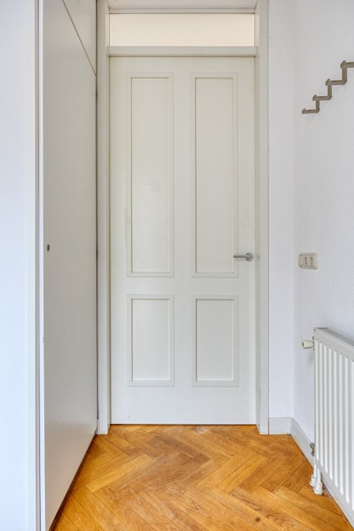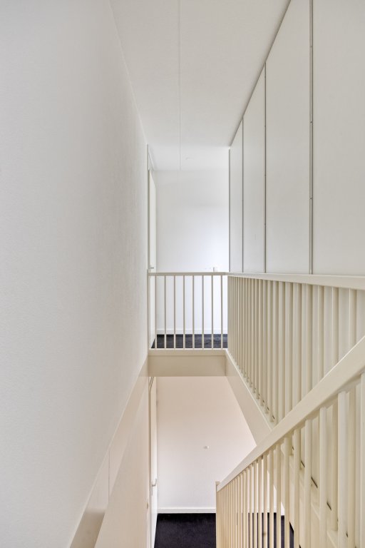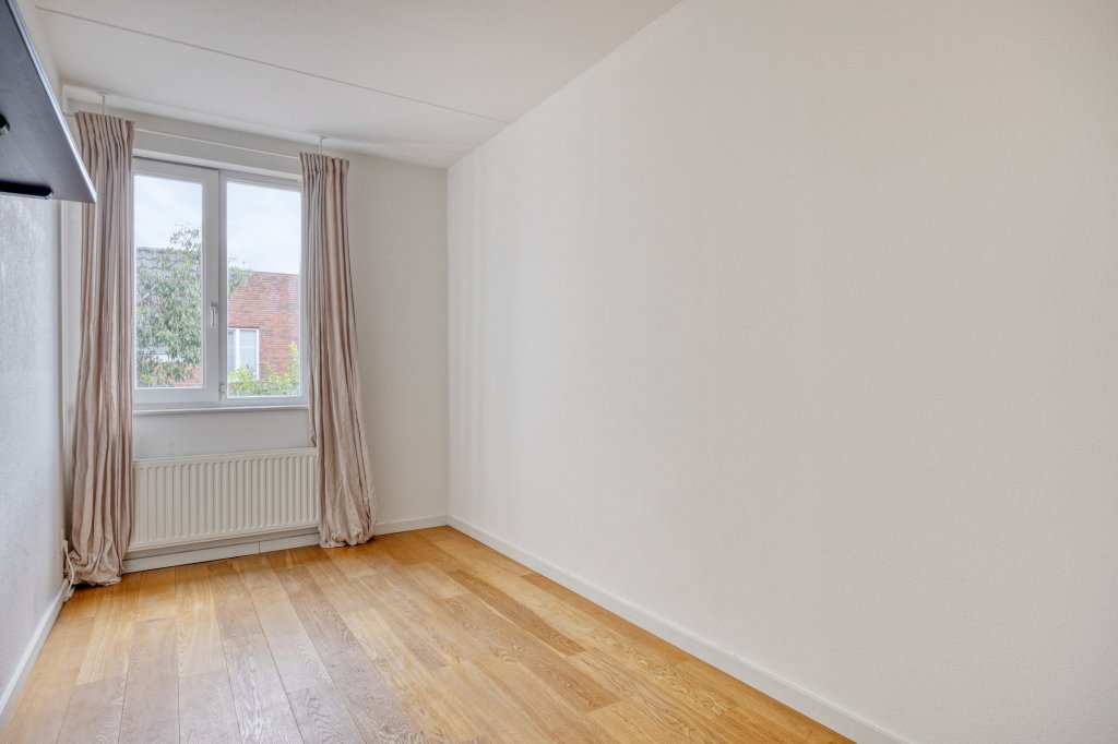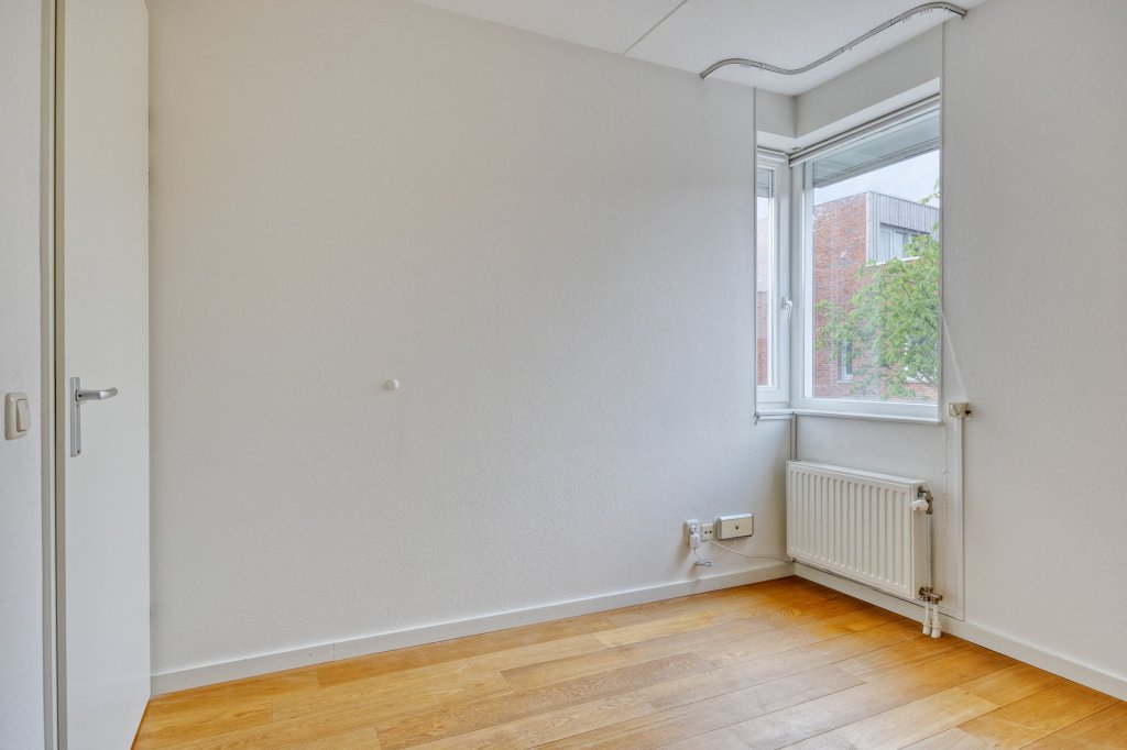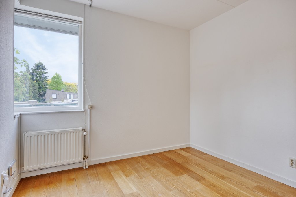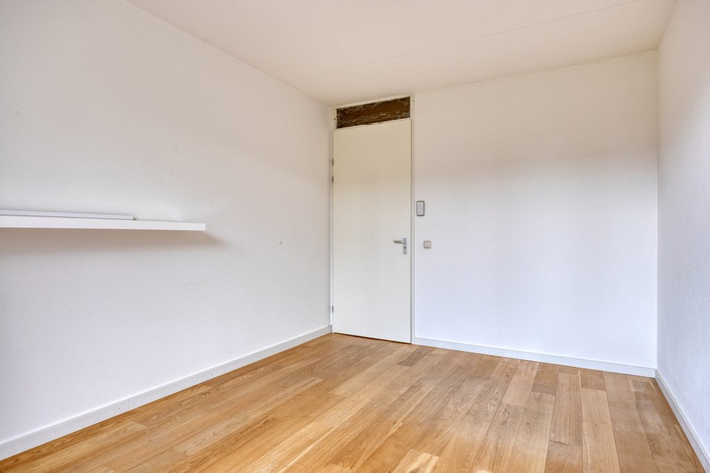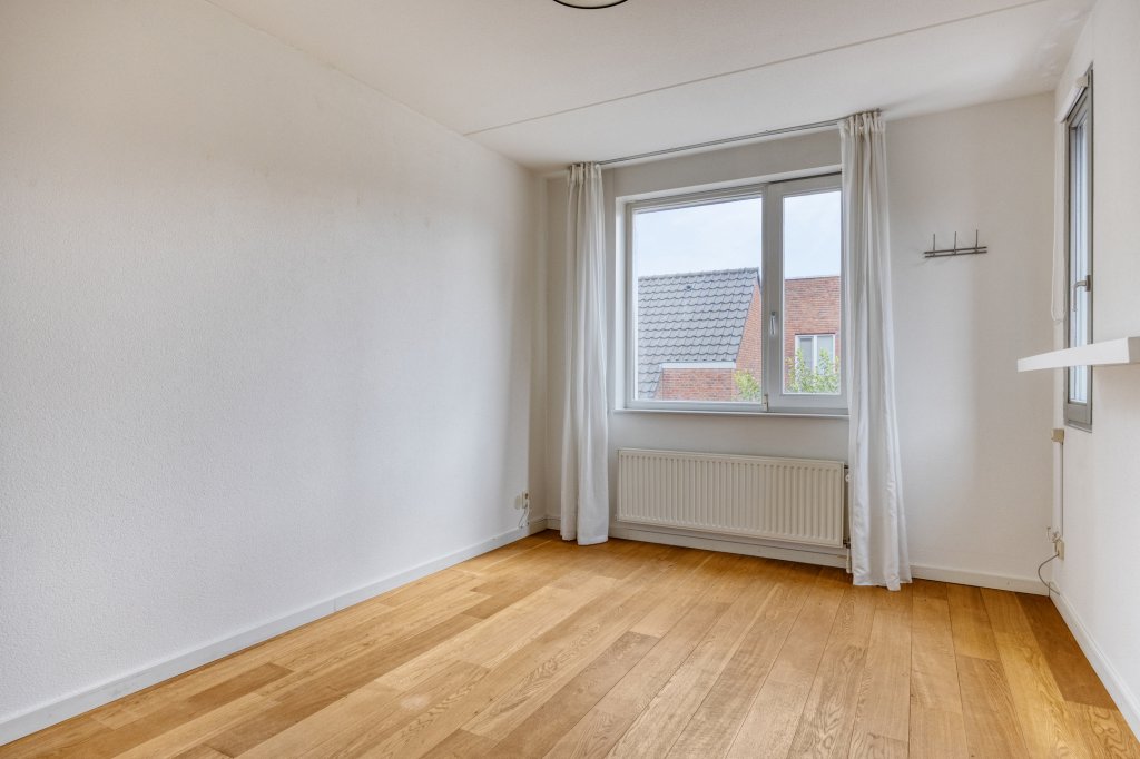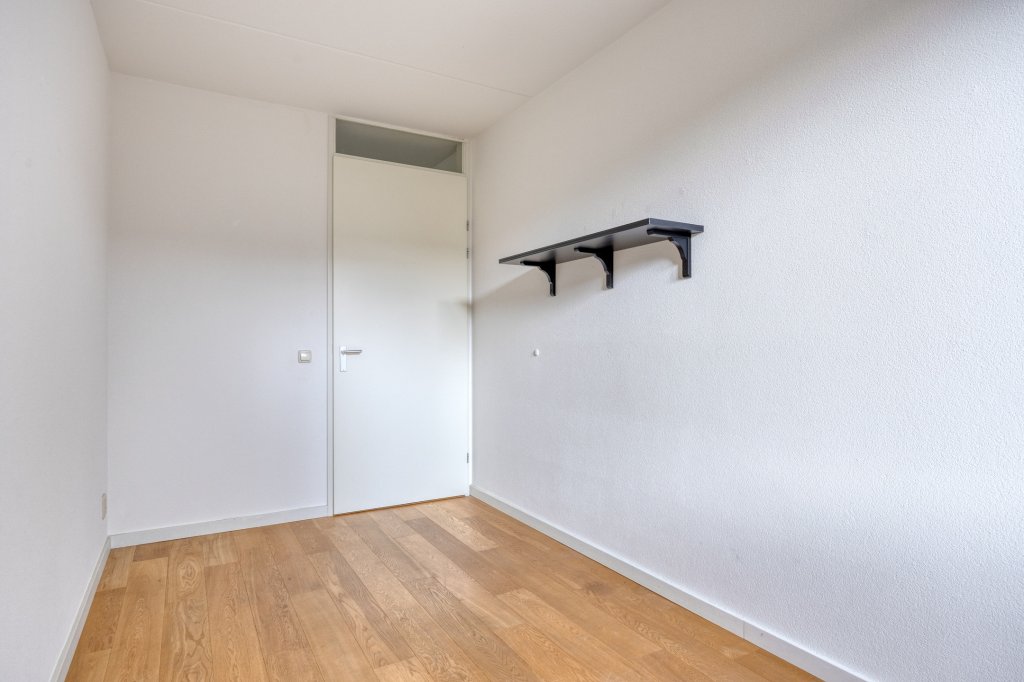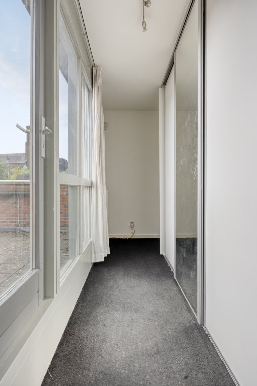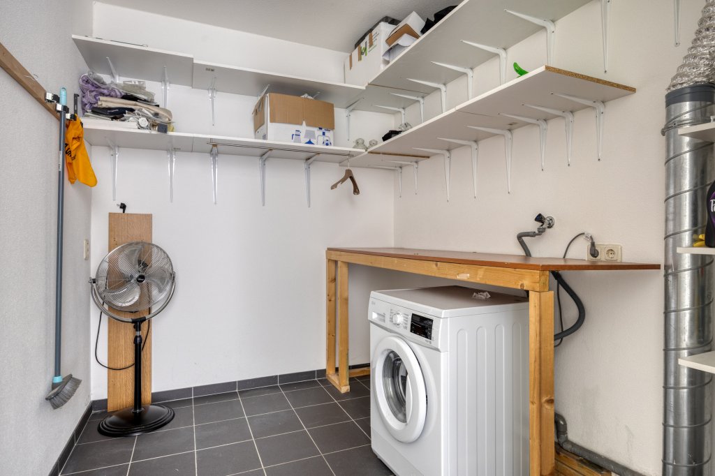 De tweede verdieping biedt veel opbergruimte, met een grote inbouwkast en twee grote spiegels (ca. 3 meter). De betegelde wasruimte is voorzien van wandrekken en biedt plaats aan een Bosch wasmachine (die kan blijven staan). Hier bevinden zich ook de CV-ketel en de WTW-unit. De vierde slaapkamer is voorzien van jaloezieën, en het dakterras van ca. 23 m² biedt een prachtig uitzicht op Strijp-S, ideaal voor het begin of einde van de dag.
