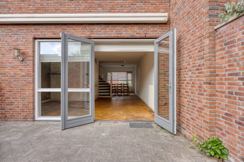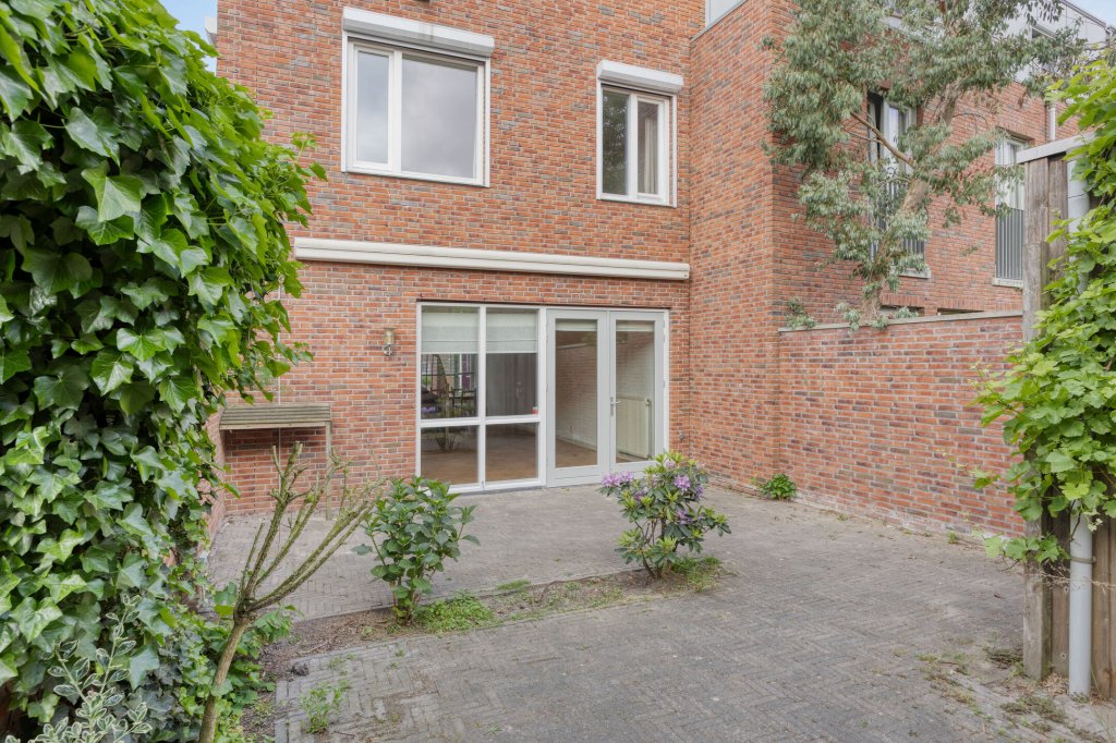 De achtertuin (ca. 52 m²) is verzorgd aangelegd en ligt op het oosten, zodat je volop kunt genieten van de ochtendzon. De tuin is laag in onderhoud en biedt ruimte voor een houten berging, een fietsenstalling en een achterom. Er is een extern watertappunt en elektriciteitspunten, ideaal voor tuingereedschap of het opladen van elektrische apparaten. Met de openslaande deuren vanuit de woonkamer is het gemakkelijk om van binnen naar buiten te stappen. Ook is er een elektrisch zonnescherm voor extra schaduw op warme dagen.