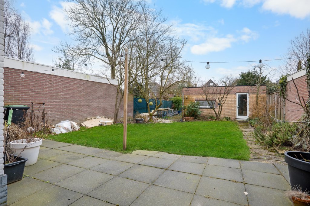 De woning beschikt zowel aan de voor- als achterzijde over een tuin. De achtertuin is goed onderhouden en biedt genoeg ruimte voor tuinmeubilair en gezellige zomerbarbecues. Ook beschikt het huis over een geïntegreerde, stenen garage met een parkeercapaciteit voor één auto.