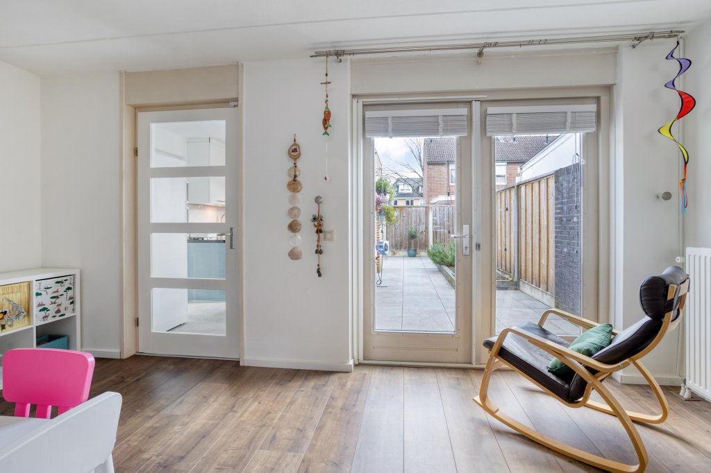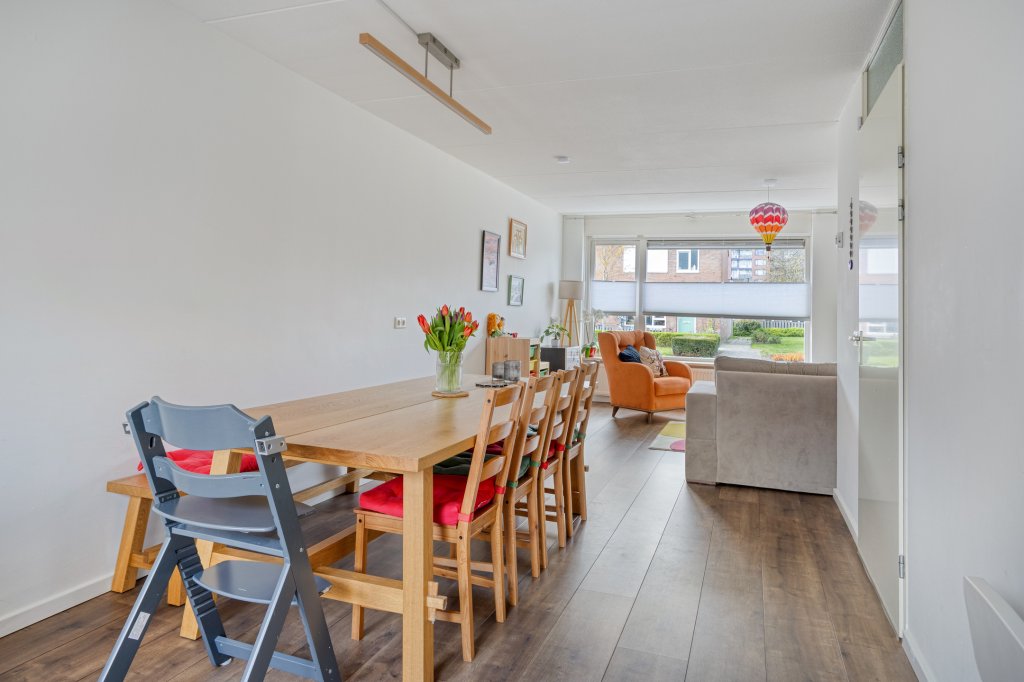 Bij binnenkomst valt direct de lichte en ruime woonkamer op. De grote raampartijen zorgen voor een prettige natuurlijke lichtinval. De gesloten keuken (vernieuwd in 2022) is voorzien van alle gewenste inbouwapparatuur.