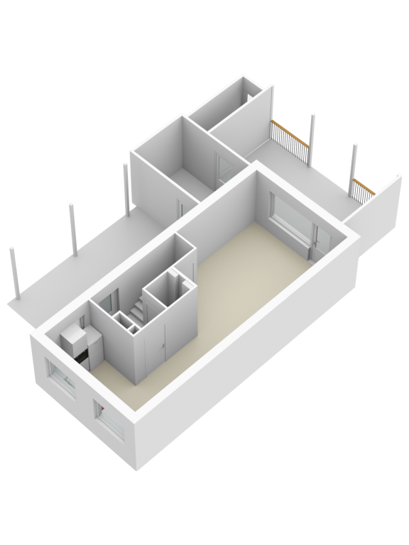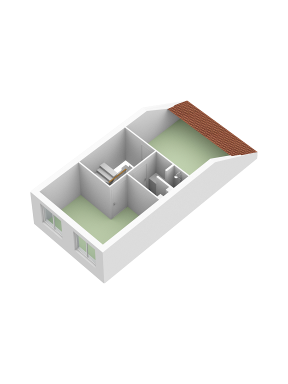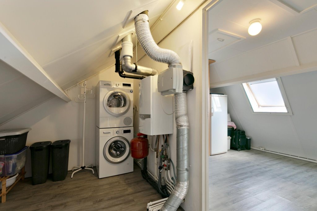2e verdieping: voorzolder met o.a. wasmachine aansluiting en CV ketel, ruime 3e (slaap)kamer.