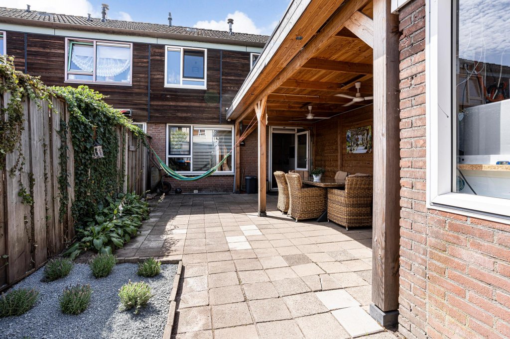 De tussenwoning heeft een woonoppervlakte van 100 m2 en bevindt zich op een perceel met een oppervlakte van 153 m2. De woning heeft een tuin op het oosten met een zeer ruime overkapping en een achterom. Achter in de tuin bevindt zich een schuur, de tuin is onderhoudsarm en biedt voldoende privacy.