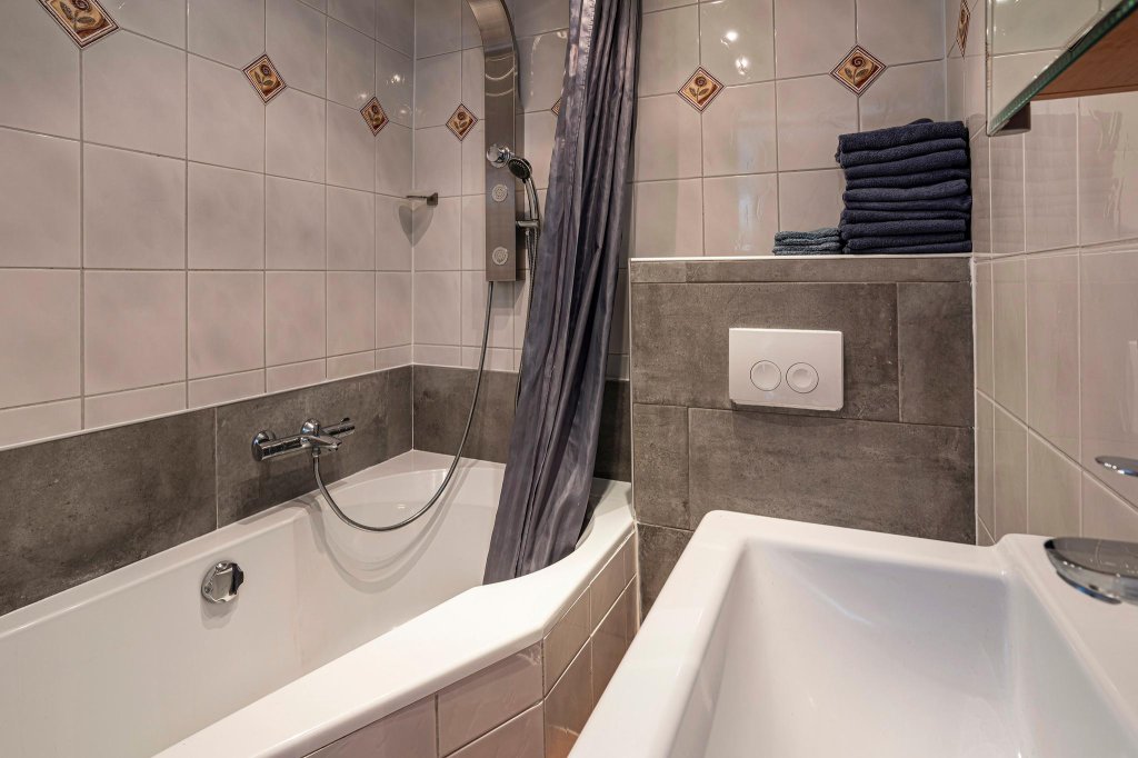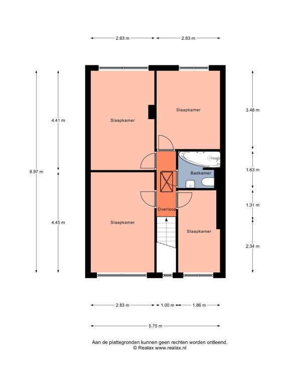 Overloop, maar liefst 4 slaapkamers en een badkamer met douchehoek, toilet en wastafel.