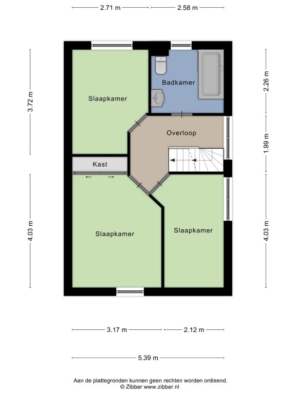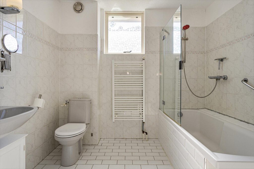 Er zijn drie slaapkamers, waarvan één ruime slaapkamer met inbouwkasten. De badkamer is volledig betegeld en voorzien van een bad met douche, toilet en wastafel.