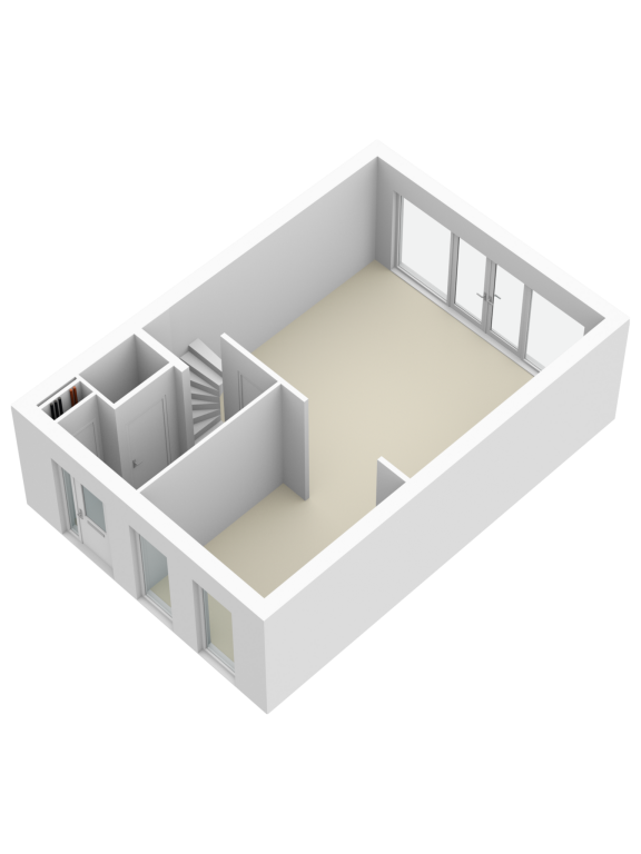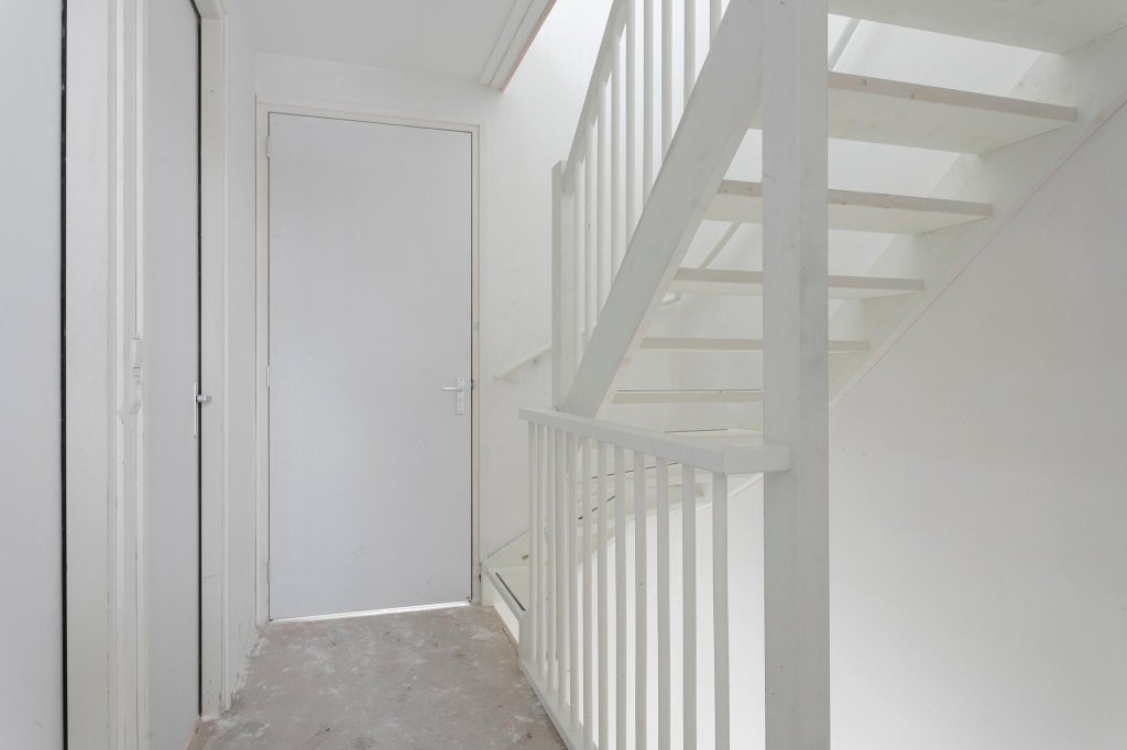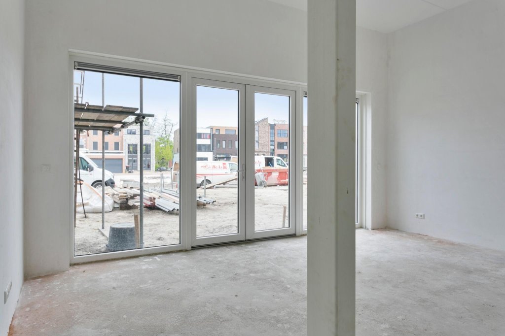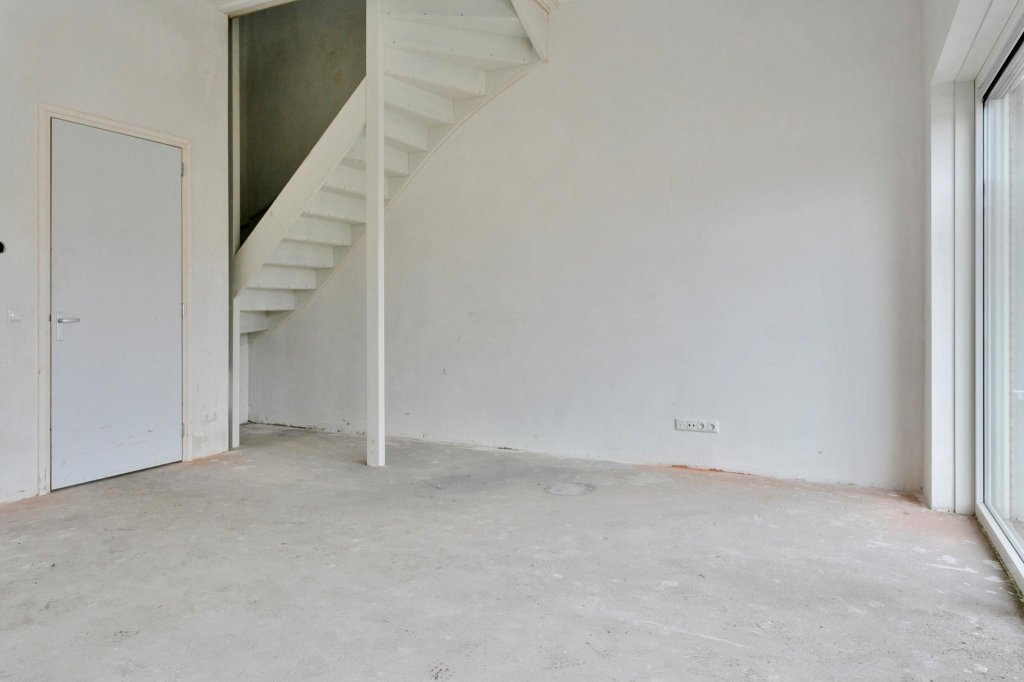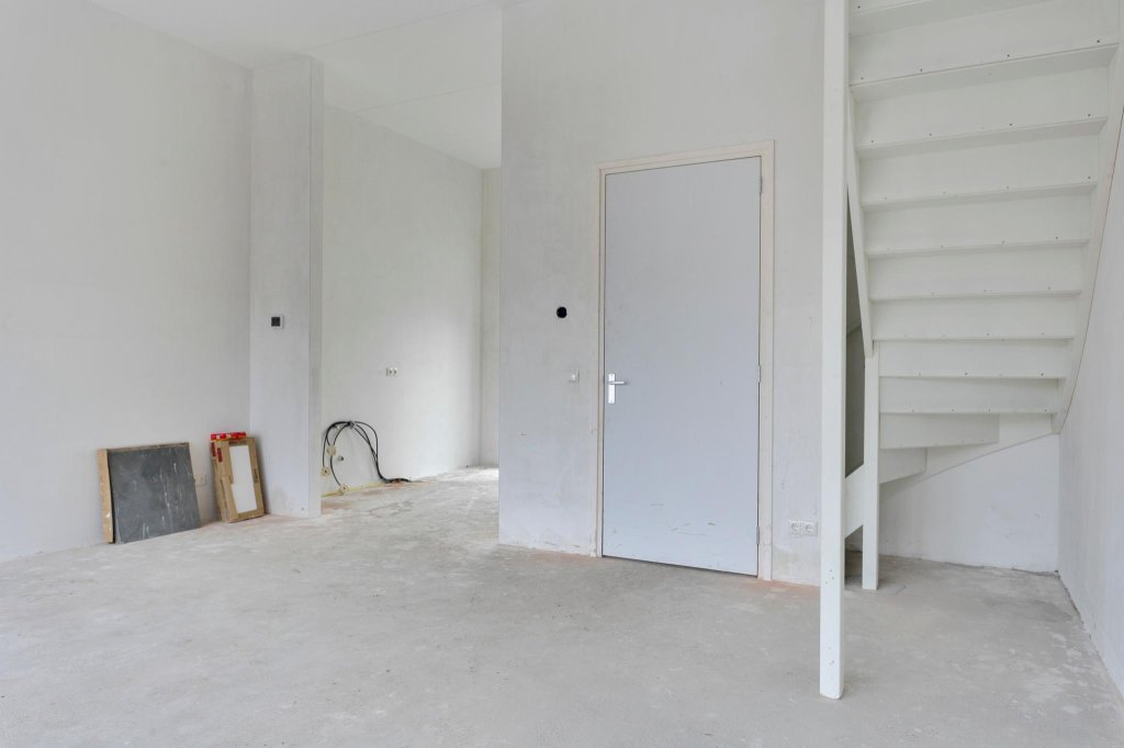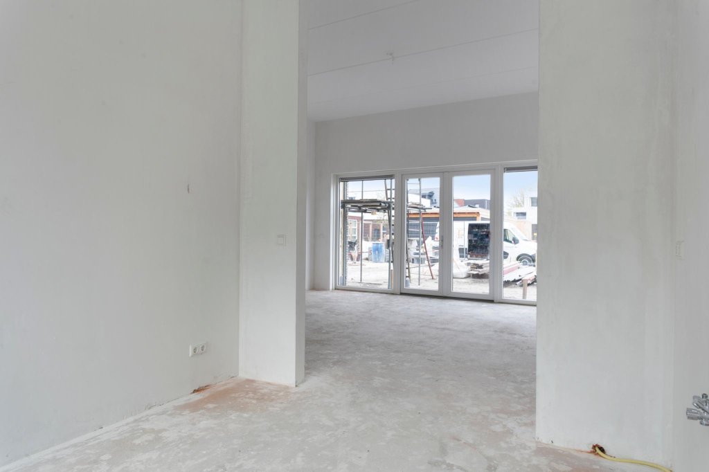 Entree, hal, toilet, meterkast en trapopgang. Toegang tot ruime woonkamer met veel lichtinval en open keuken aan de voorzijde van de woning. Keuken moet nog gerealiseerd worden.