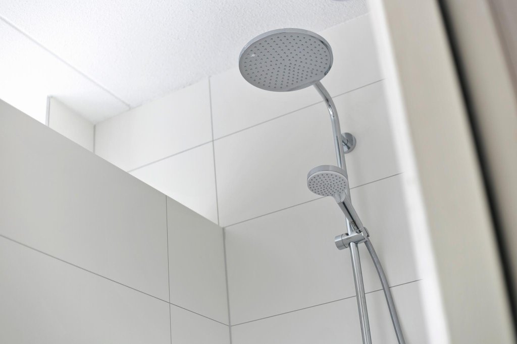 Overloop met toegang tot drie ruime slaapkamers en een badkamer voorzien van een inloopdouche, toilet en dubbele wastafel.