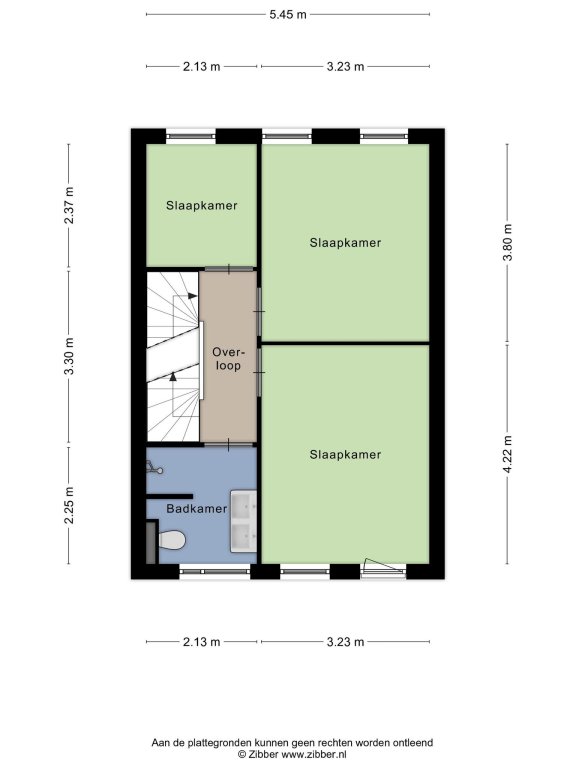 Overloop met wasmachineaansluiting en toegang tot twee ruime slaapkampers.