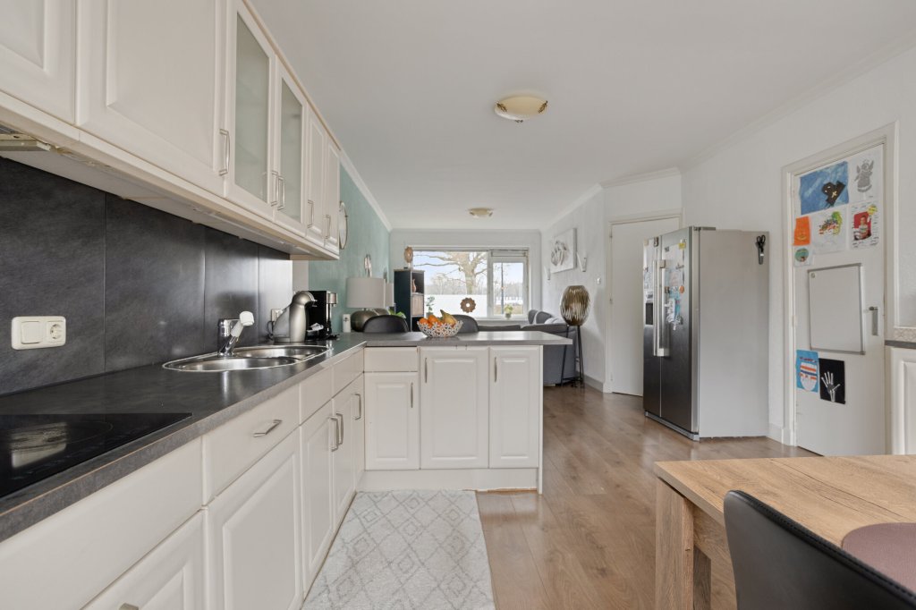 Bij binnenkomst wordt je meteen verrast door een ruime hal die toegang biedt tot de royale woonkamer met open keuken voorzien van diverse inbouwapparatuur. De woonkamer is zeer ruim waardoor er tal van mogelijkheden zijn. Aan de achterzijde zit een berging met wasmachineaansluiting. Ook is de toilet onder de trap gesitueerd.
