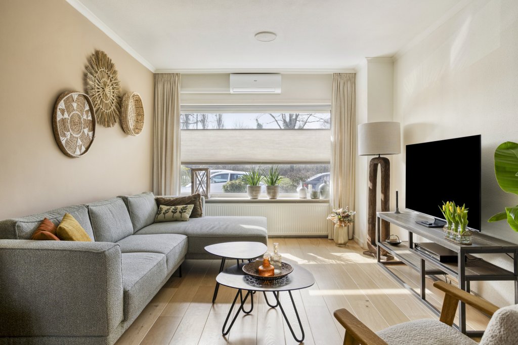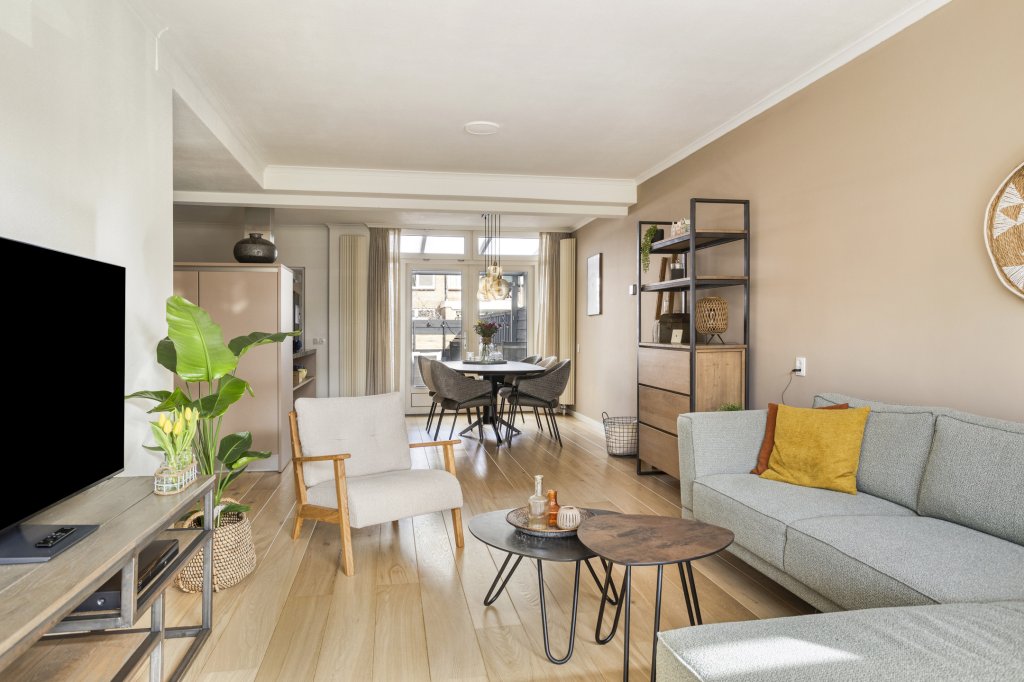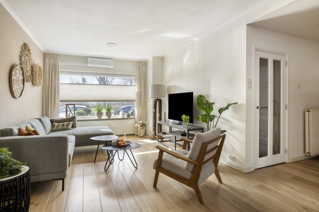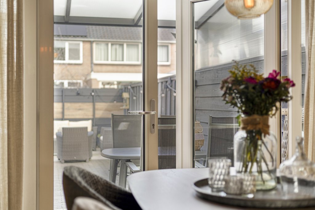 - Door uitbouw vergrote woonkamer met openslaande tuindeuren.