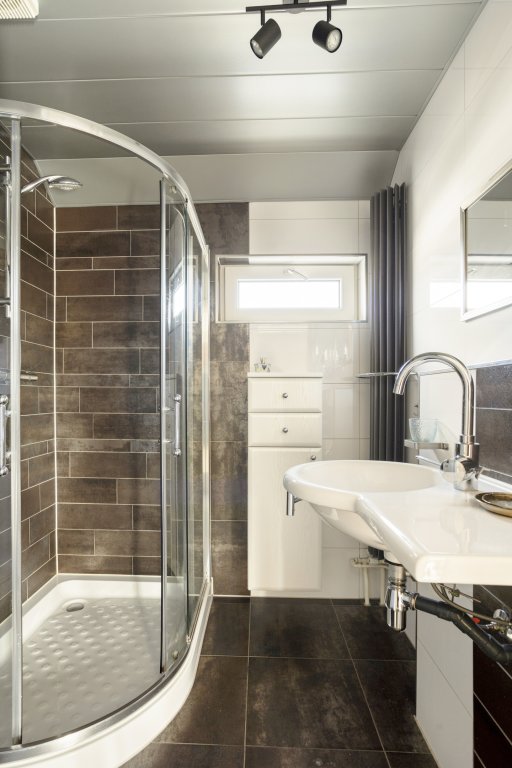 - Deze badkamer werd vergroot en beschikt o.a. over een tweede toilet en een grote douchehoek.