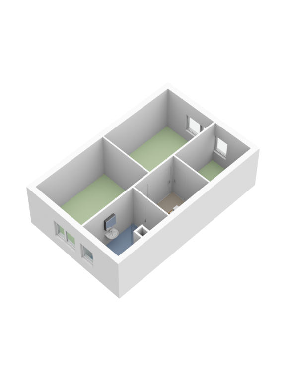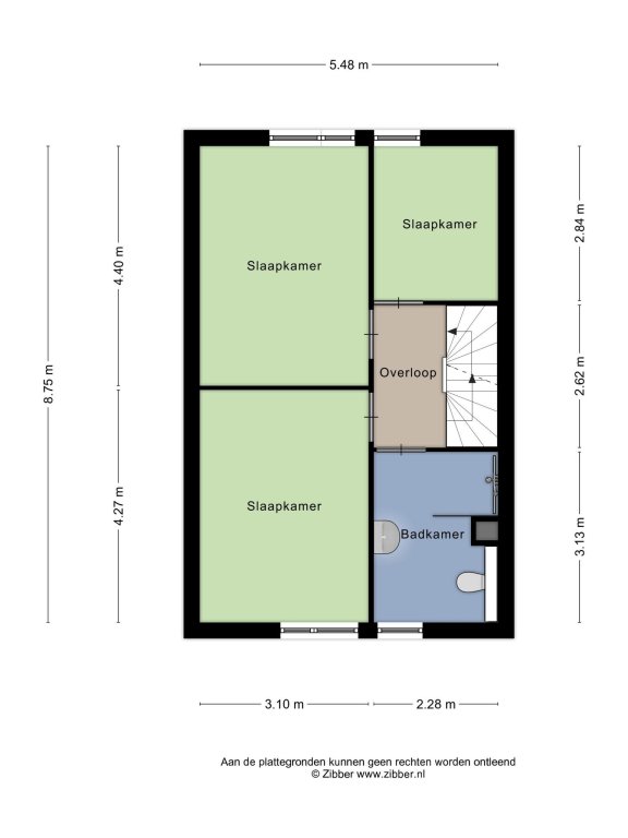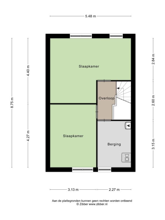 2e verdieping met overloop, 2 ruime slaapkamers en separate stook/wasruimte.