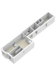 Begane grond: entree/hal met trapopgang, bergkast onder de trap, ruime L-vormige doorzonwoonkamer (circa 27 m²), half open keuken tussenhal/bijkeuken met cv-opstelling en aansluiting voor de wasmachine, toiletruimte en toegang extra aangebouwde ruimte