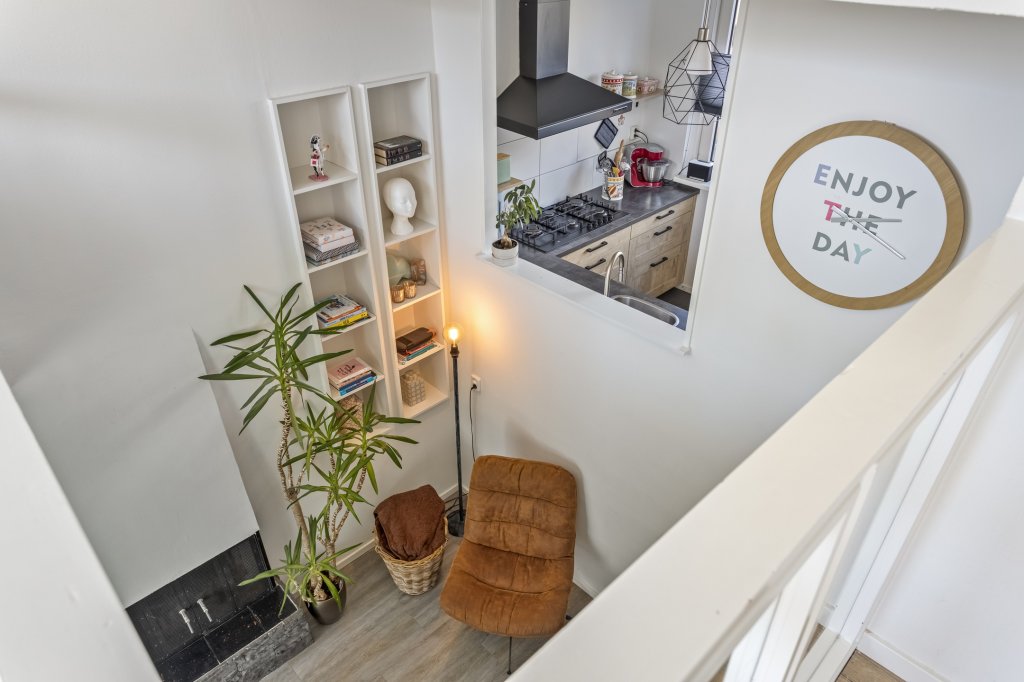 De verrassing van de woning is dat ze een splitlevel herbergt, waardoor er een speelse, functionele en niet alledaagse indeling is. Daarnaast is de woning gunstig gelegen ten opzichte van het stadscentrum, cultureel Roombeek, ontsluiting richting de snelweg A1 en het groene buitengebied.