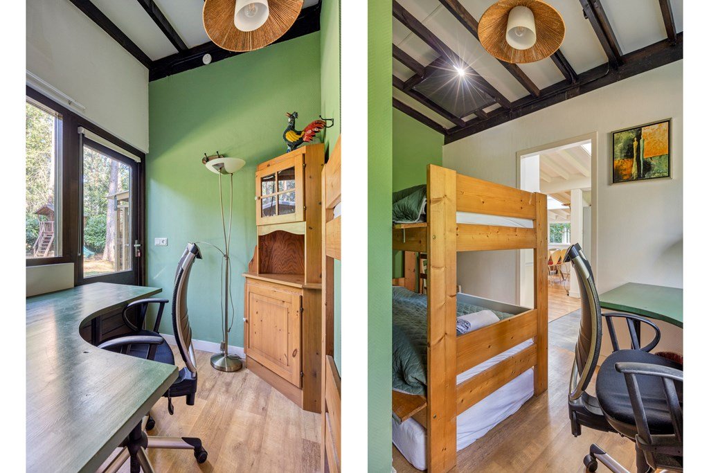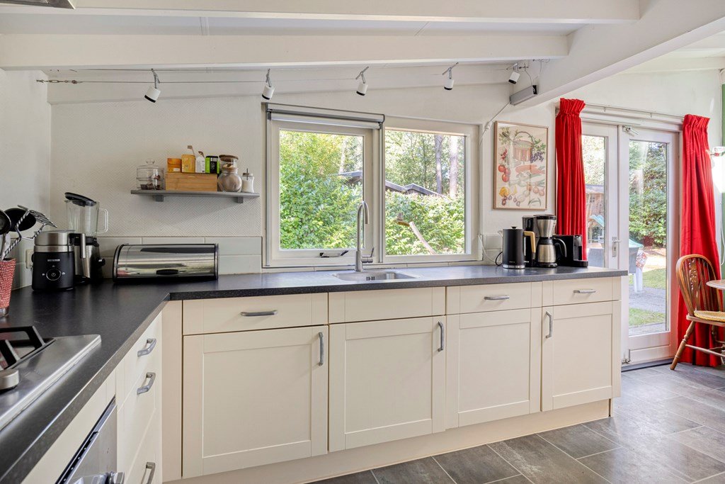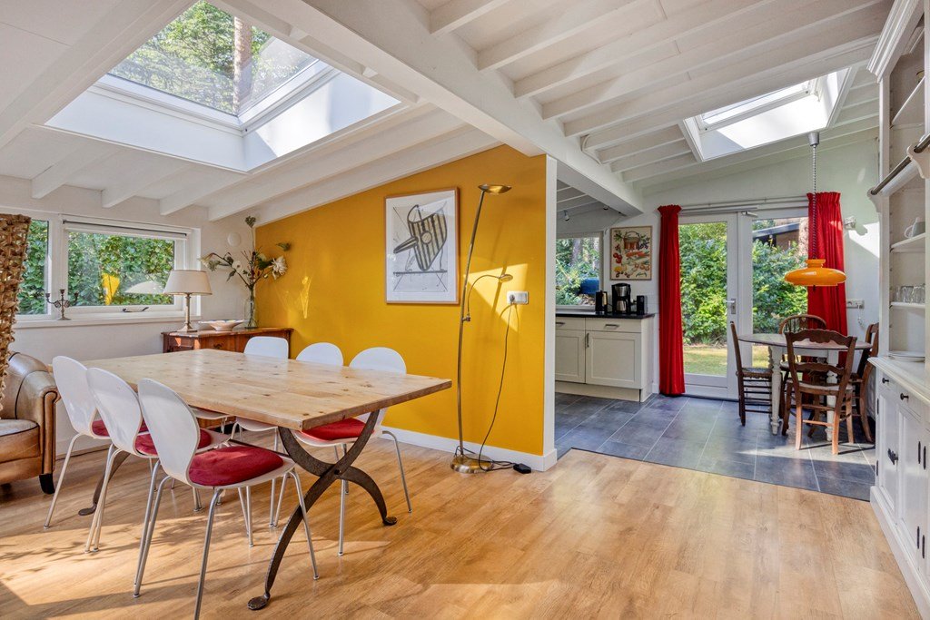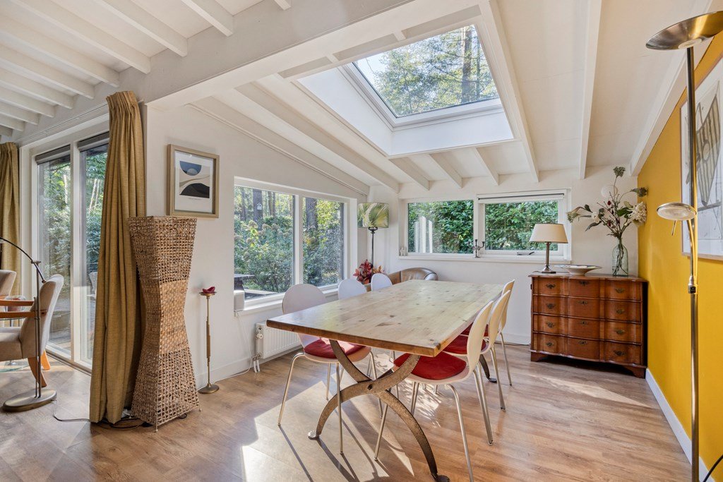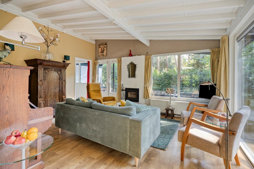 De woning, gebouwd in 1975, biedt 96 m² aan woonoppervlakte en staat op een ruim perceel eigen grond van maar liefst 626 m². Dankzij de ligging in het bos ben je omringd door groen en geniet je van optimale privacy. De tuin met diverse zitjes en een picknicktafel nodigt uit om urenlang buiten te vertoeven. Zo is er zelfs een speel-klimhuisje voor de kleintjes. Het overdekte terras met binnen- en buitenhaard zorgt ervoor dat je ook op frissere dagen kunt genieten van de bosrijke omgeving.