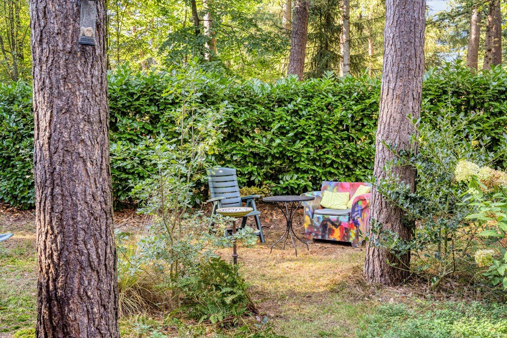 De woning beschikt over een ruime tuin waar u midden in het bos kunt genieten van rust en natuur. De begroeiing rondom geeft ruime privacy.