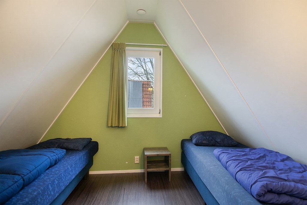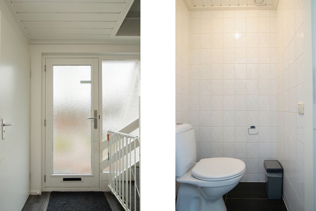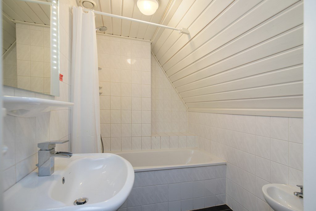 Bij binnenkomst via de voordeur bereikt u de hal. Aan de rechterzijde bevindt zich het separate toilet en de nette badkamer, voorzien van een ligbad met douchecombinatie, een wastafel en een praktische kinderwastafel. Daarnaast vindt u hier de eerste slaapkamer met twee eenpersoons boxspringbedden.