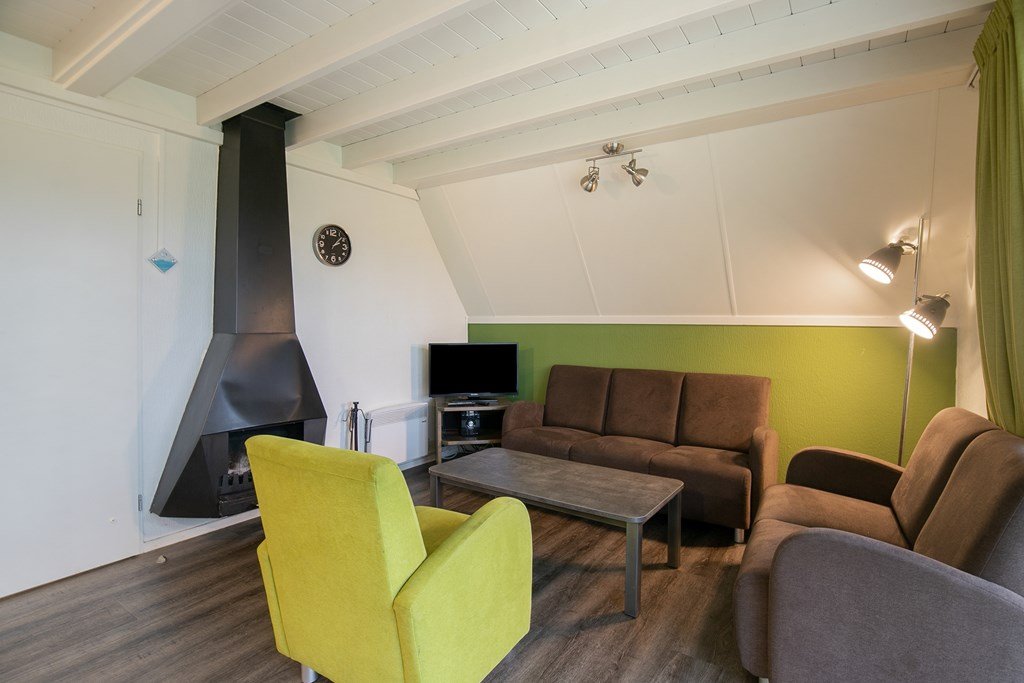 Comfort: Verwarming via elektrische kachels; de open haard dient als sfeervolle bijverwarming.