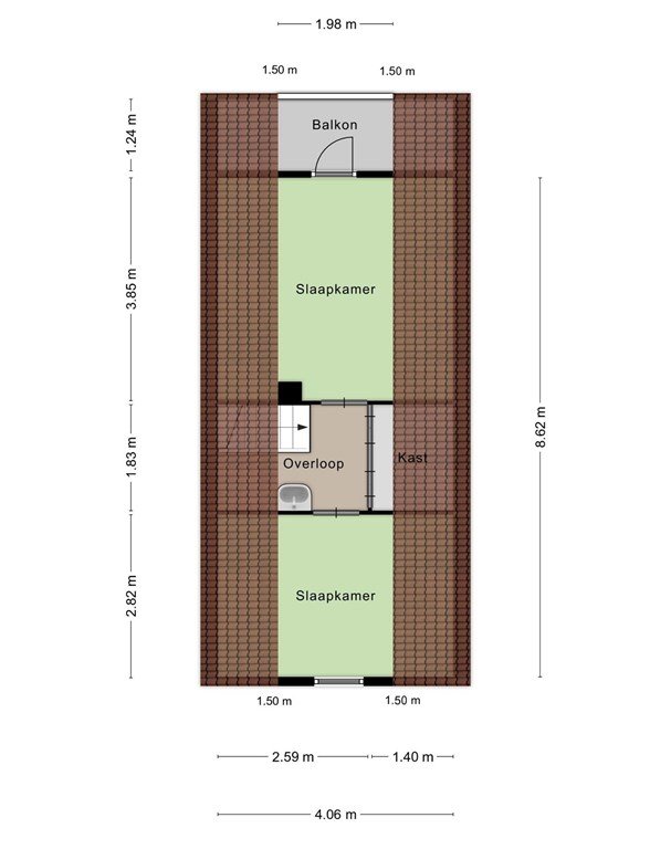 De overloop met vaste kast geeft toegang tot twee ruime slaapkamers. Eén van deze kamers beschikt over een eigen balkon, waar u heerlijk kunt genieten van de eerste zonnestralen.