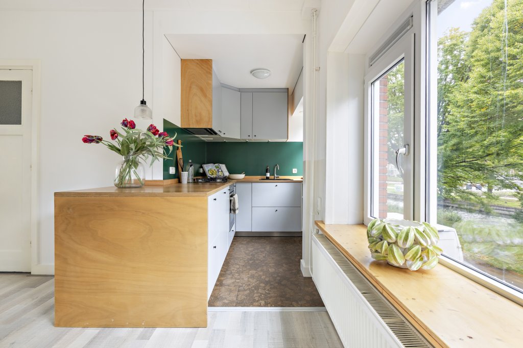 “Wat een fijne verrassing!” dacht ik meteen toen ik binnenstapte aan de Singelweg 76a. Een heerlijke maisonnette bovenwoning uit 1934, met het geliefde jaren ’30-karakter: sfeervolle details en een prettige indeling. De lichte woonkamer, de open keuken en het uitzicht over het Oosterhamrikkanaal maken het plaatje compleet. De sfeer is warm en huiselijk, (bijna) alles is netjes onderhouden en je kunt er zó in.