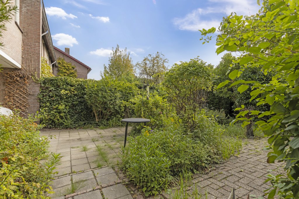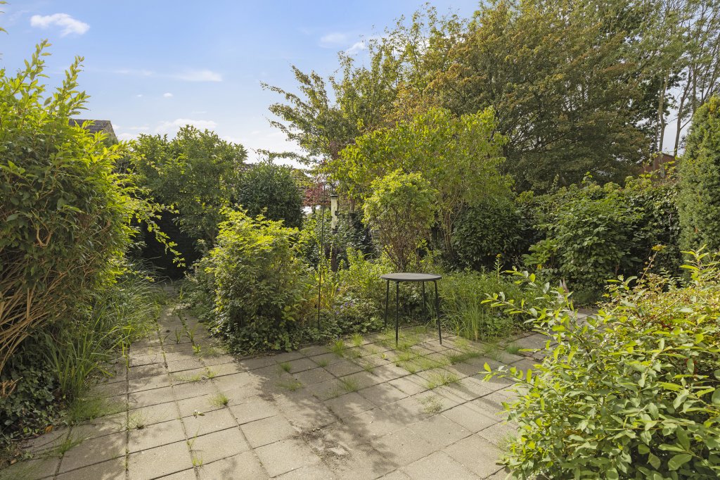 Buiten: Ruime tuin op het zuiden met schuur en carport van hout.
