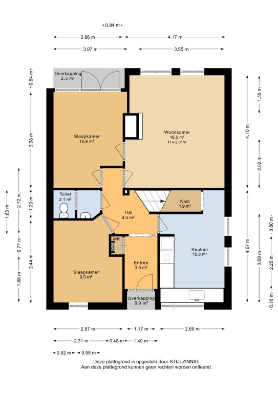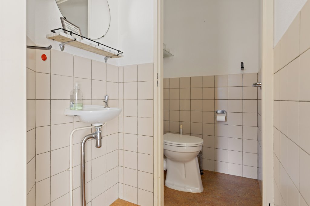 Entree; hal met meterkast en toilet; dichte keuken aan de voorzijde van de woning; woonkamer en twee aparte (behandel)ruimtes.