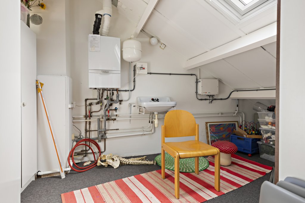 Tweede verdieping: overloop en vijfde (slaap)kamer met wastafel.