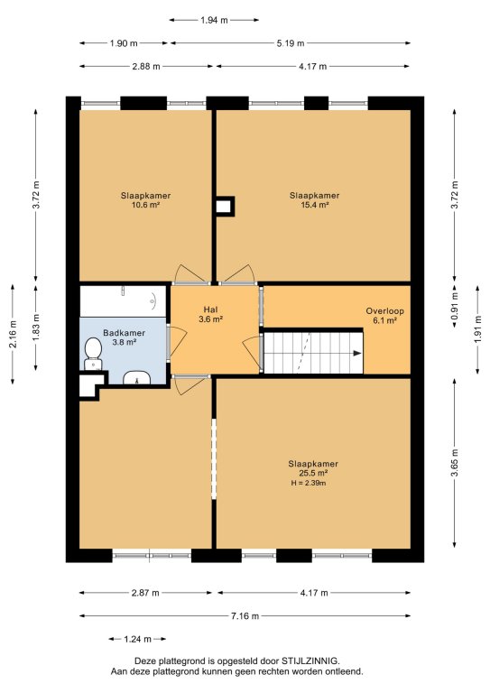 Overloop; 3/4 behandelruimtes/slaapkamers en badkamer.