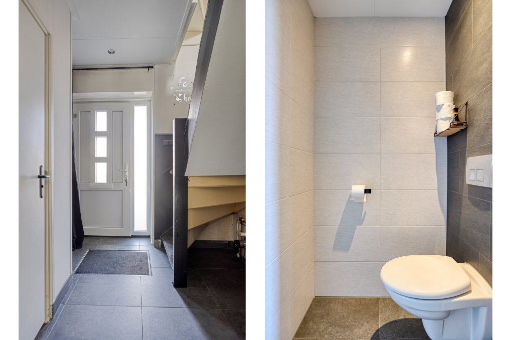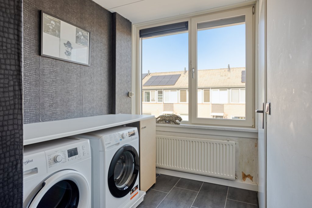 Op de eerste verdieping bevinden zich drie ruime slaapkamers en een moderne, vergrote badkamer met inloopdouche, tweede toilet en wastafel. Daarnaast is er een aparte waskamer gerealiseerd—ideaal voor extra gemak en ruimte. De vaste trap naar zolder biedt nog meer mogelijkheden, zoals een extra kamer of werkplek.