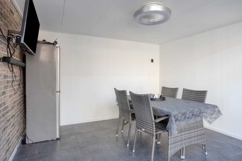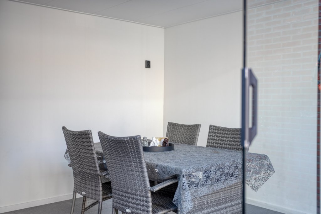 De achtertuin is een absolute plus: gelegen op het zuiden, verzorgd aangelegd en voorzien van een volledig geïsoleerde, moderne overkapping met glazen wand. Hier zit je het hele jaar door comfortabel—van zonnige middagen tot lange avonden buiten.