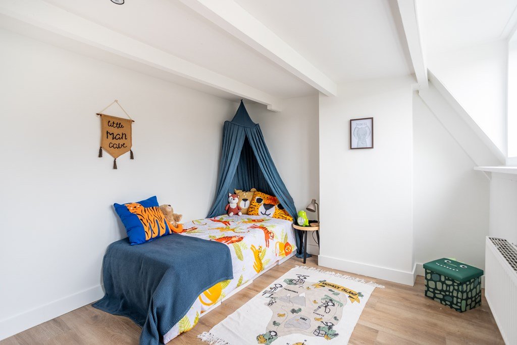 Hier bevinden zich 2 ruime slaapkamers, waarvan de slaapkamer aan de voorkant een extra dakraam heeft.