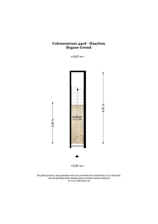 Hal met toegang tot de toiletruimte, deur naar de woonkamer en open keuken, deur naar de 1e (slaap)kamer en de trap naar de 2e verdieping.
