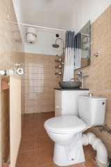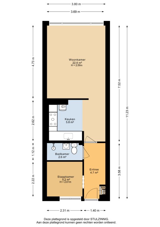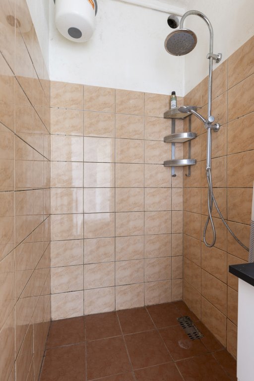 Eerste verdieping: Entree, hal, woonkamer met open keuken, slaapkamer, badkamer met douche, toilet en wastafel. Berging in het pand.