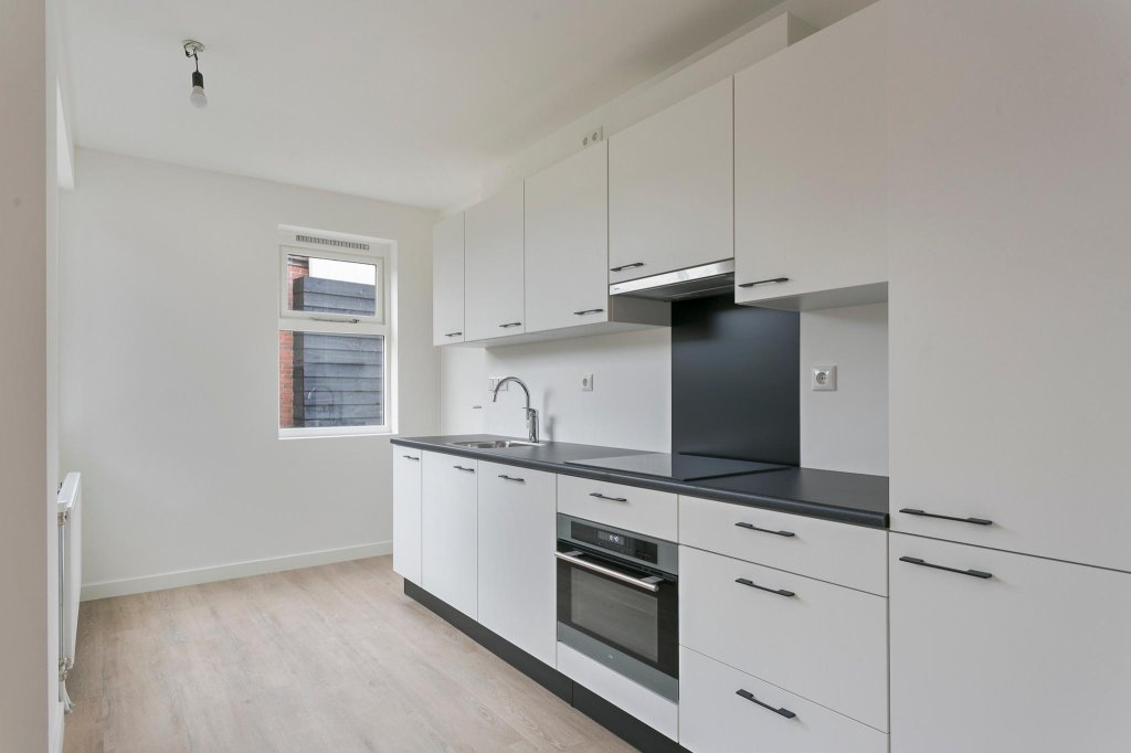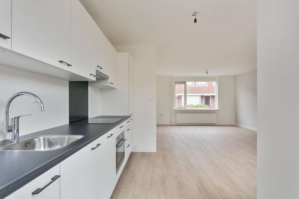 woonkamer. Via de woonkamer heeft u toegang tot de achtertuin. Aan de achterzijde zit een nieuwe keuken in lichte kleursamenstelling die is uitgerust met diverse inbouwapparatuur. Vanuit de keuken bereikt u de achter hal die toegang heeft tot de tuin en de ruime garage.