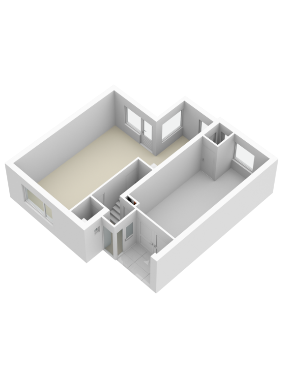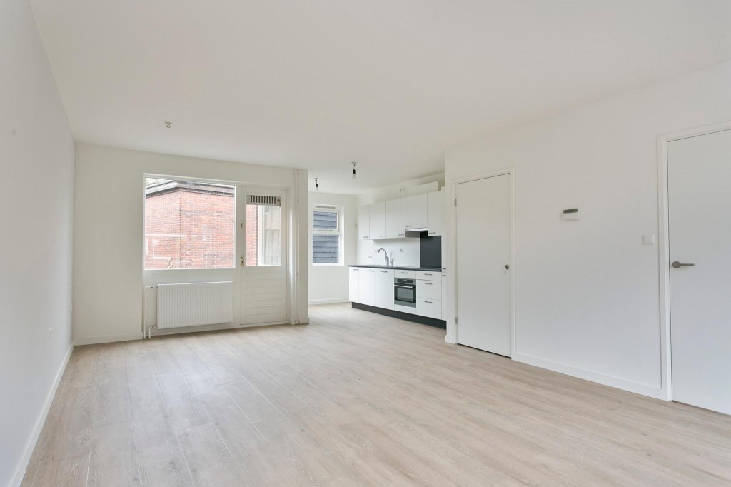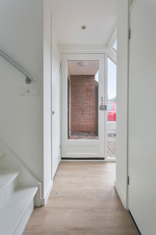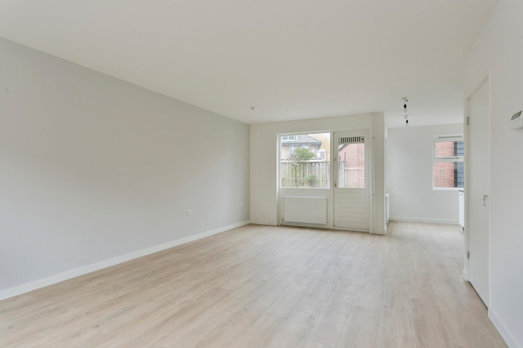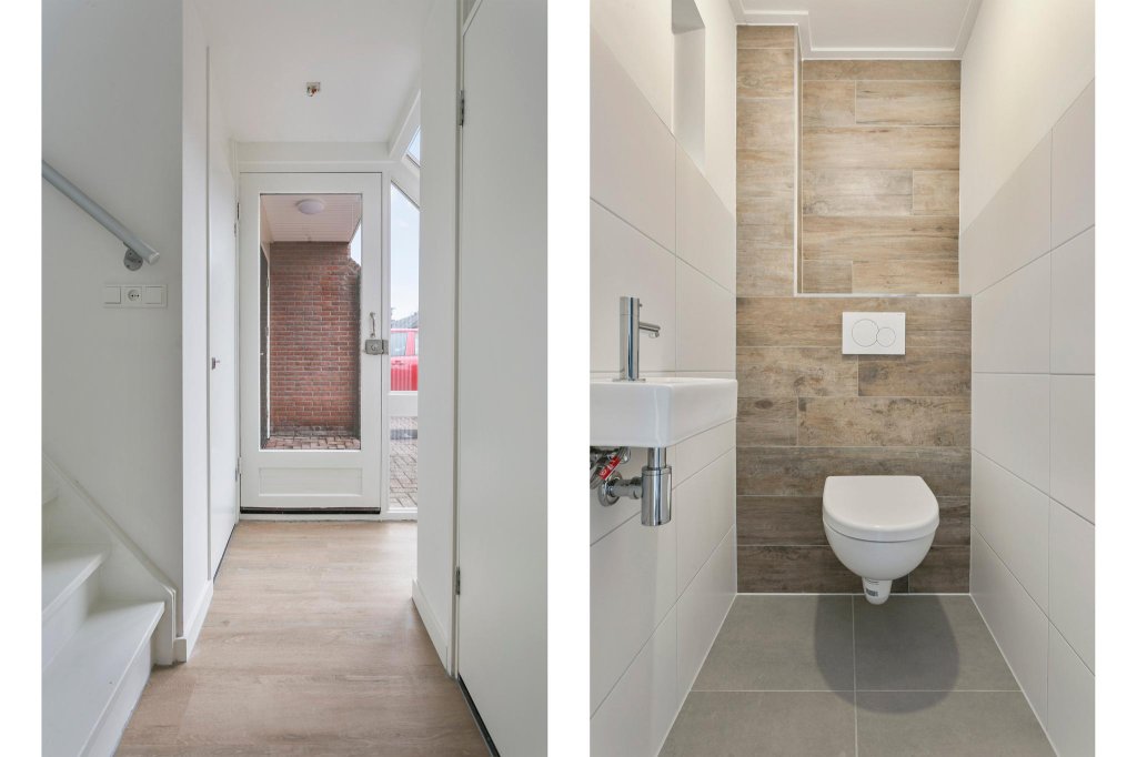 Begane grond: via de entree komt u de woning binnen met een lichte hal met nieuw toilet en meterkast. Vervolgens komt u de L-vormige woonkamer met trapkast en grote raampartijen aan de voor en achterzijde van de
