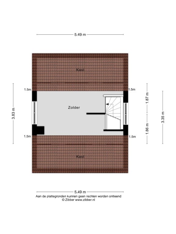 Tweede verdieping, te bereiken via een vaste trap: Op de tweede verdieping bevindt zich een ruime zolder met de mogelijkheid voor een extra (slaap)kamer.