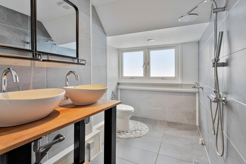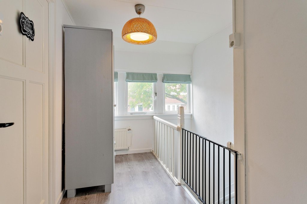 Ruime overloop, aan de achterzijde is de master bedroom gesitueerd, heerlijke ruime kamer met ramen over de gehele breedte. Aan de voorzijde de tweede slaapkamer van prima formaat. De badkamer (2020) met inloopdouche, vloerverwarming, dubbele wastafel en separaat toilet ligt aan de achterzijde. De gehele eerste verdieping is voorzien van een laminaatvloer.
