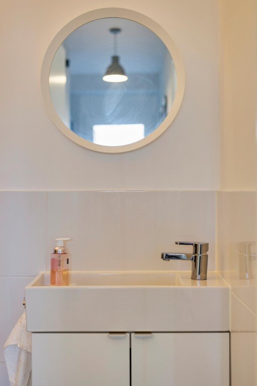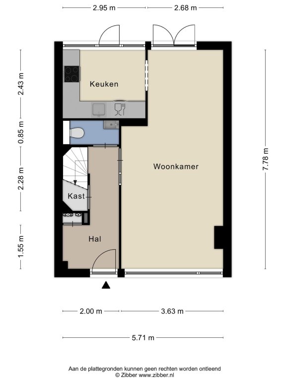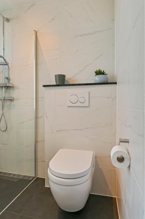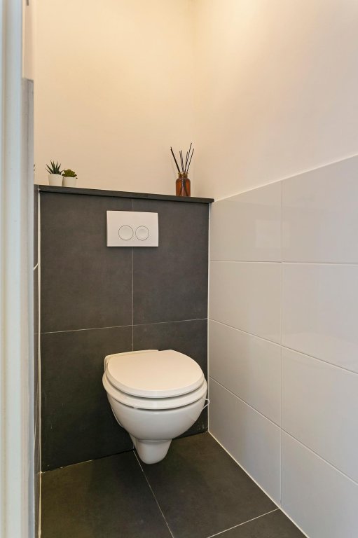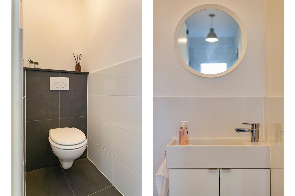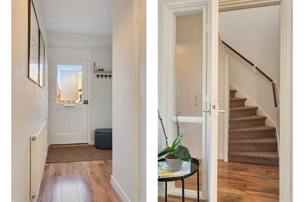 Via de ruime voortuin, die voorzien is van diverse groenborders, kom je binnen in de hal. Hier bevindt zich een modern luxe toilet met fonteintje en onderkast, een trapkast, de meterkast, trap naar de 1e verdieping en deur naar de woonkamer.