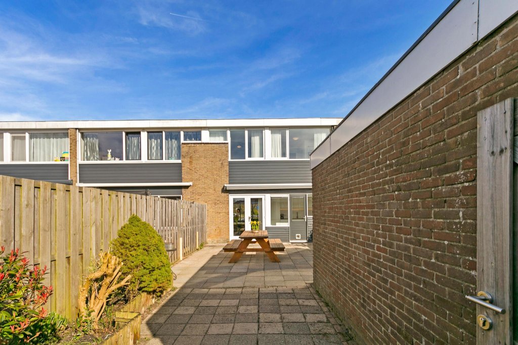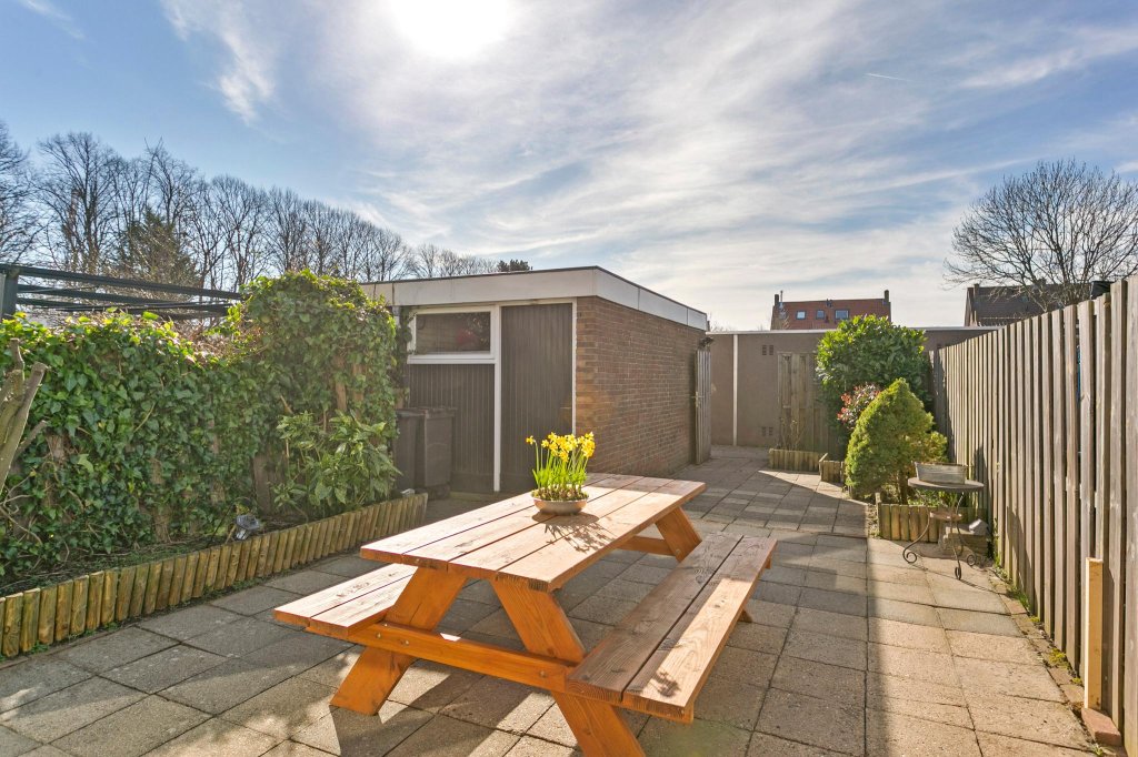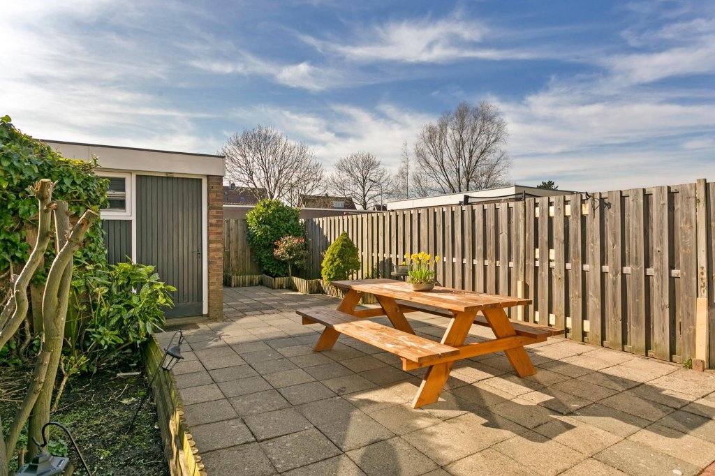 Via de keuken of via de openslaande deuren van de woonkamer ga je naar de ruime zonnige achtertuin.