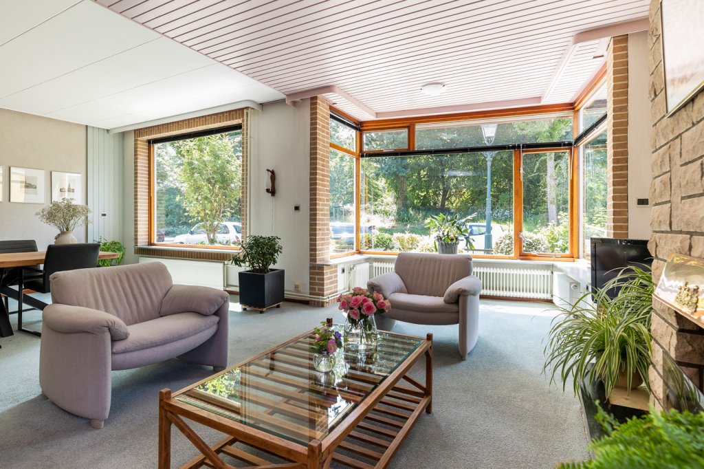 Bij binnenkomst word je verwelkomd in een ruime hal met een fraaie trapopgang, die een elegant accent geeft aan het interieur. Direct naast de entree bevindt zich een grote kamer die ideaal is als kantoorruimte. Deze ruimte biedt privacy en rust, waardoor je ongestoord kunt werken. De royale woonkamer loopt over de gehele breedte van het huis en heeft een erker en sfeervolle open haard. De grote raampartijen zorgen voor veel natuurlijk licht en een prachtig uitzicht op het tegenoverliggende groen. De dichte keuken is gedateerd maar degelijk en voorzien van diverse apparatuur. Vanuit de keuken heb je direct toegang tot de nette badkamer met een douche, wastafelmeubel en designradiator. De aangrenzende bijkeuken is een handige ruimte met een wasmachineaansluiting en de eerste CV-ketel. Vanuit hier heb je toegang tot de achtertuin.